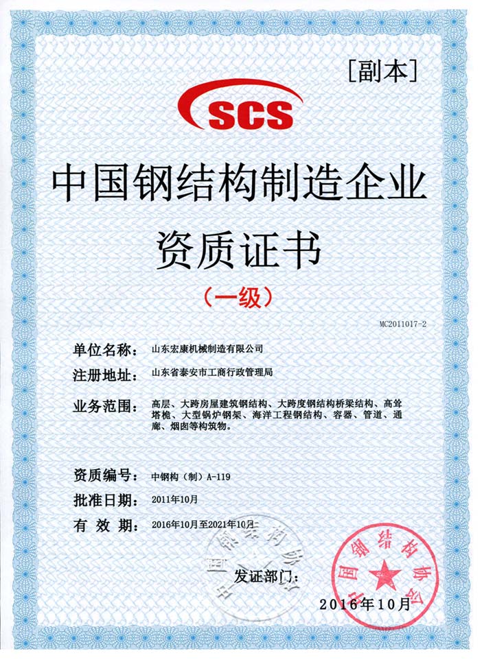 中國(guó)鋼結(jié)構(gòu)制造企業(yè)資質(zhì)證書(shū)